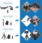 دوربینهای ورزشی در کمتر از یک دهه به یکی از برندهای با ارزش دنیا تبدیل شده و در بین ورزشکاران، دوستداران طبیعت و ماجراجویان از محبوبیت بالایی برخوردار هستند. به همین دلیل برای این دوربین ها، لوازم جانبی متعددی هم تولید شده است. محصول فوق از لوازم جانبی های پر کاربرد دوربین های ورزشی است که در یک کیف برزنتی با ابعاد31 × 20.5 × 6 سانتی متر قرار گرفته است. این مجموعه شامل انواع مانت ها برای قرار گرفتن روی سر، دور سینه و مچ دست است. همچنین در این تجهیزات مونوپاد و سه پایه برای ثبت تایم لپس و ویدیو لپس قرار گرفته است. به طور کلی تمامی تجهیزات لازم برای تهیه ویدیو و ثبت تصاویر با استفاده از دوربین های ورشی در این کیت گرد آوری شده است.