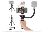 همراه با آداپتور مخصوص دوربین های ورزشی برای اتصال دوربین اکشن شما به سر سه پایه، یک لوله فوقالعاده انعطافپذیر 9.4 اینچی/24 سانتیمتری با پیچ 1/4 اینچی برای اتصال به سر سهپایه، و همچنین با یک کفشک در انتهای هولدر برای نصب آسان نور ثابت یا میکروفون به آن